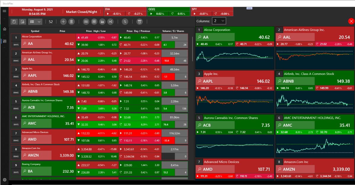 Windows 10/11 is a very powerful operating system. Modern computers have a lot of to offer and the Stock Market provides a lot of information per second. StockPlex is designed for speed and to display all the information the fastest way.